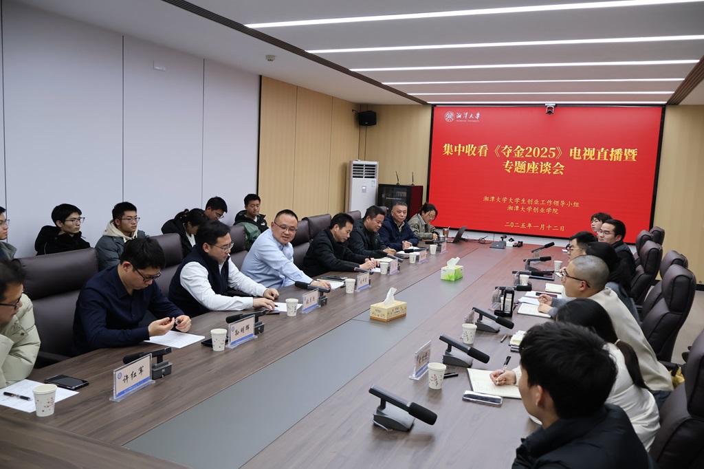 1月12日晚,公司集中收看湖南卫视《夺金2025》电视节目直播暨专题座谈会在太阳成集团tyc33455cc会议室举行。副董事长刘中望出席。员工工作部部长赵猛、副部长许红军,招生与就业指导处处长陶永峰,校团委书记张月朗,党委宣传部副部长孙明辉,太阳成集团tyc33455cc直属党支部书记谢胜文、副经理张越及师生代表参加。