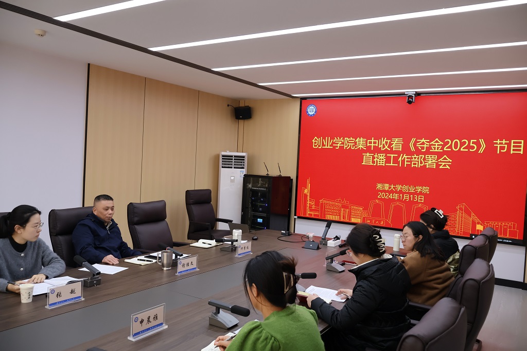 谢胜文强调,全体同学在巩固学业之余要认真观看老员工创业专题节目《夺金2025》电视直播,学习优秀人才的创业故事与创业方法,汲取宝贵经验,凝练创业思路,积极发出湘大创业之声,贡献青年智慧。