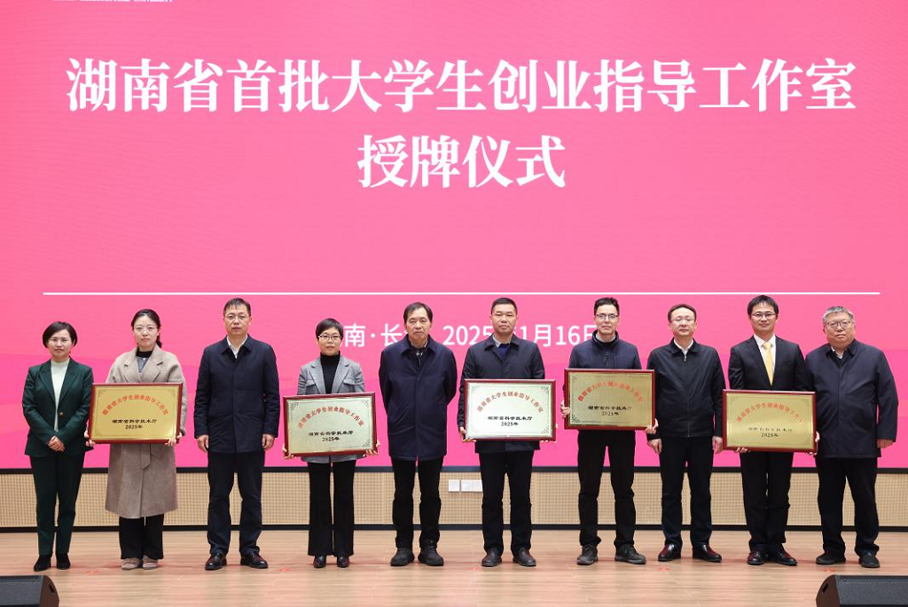 1月16日,湖南省首批创业指导工作室授牌仪式在长沙举行。中南大学、湖南大学、湘潭大学、长沙理工大学、湖南农业大学等五所高校被授予湖南省首批老员工创业指导工作室牌匾。