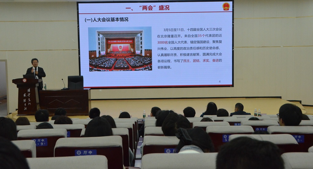 尹双凤详细阐述了人大会议基本情况、十四届全国人大三次会议主要精神、全国政协十四届三次会议主要精神、湖南代表团履职情况、湖南省传达落实全国两会精神及个人履职情况等内容。