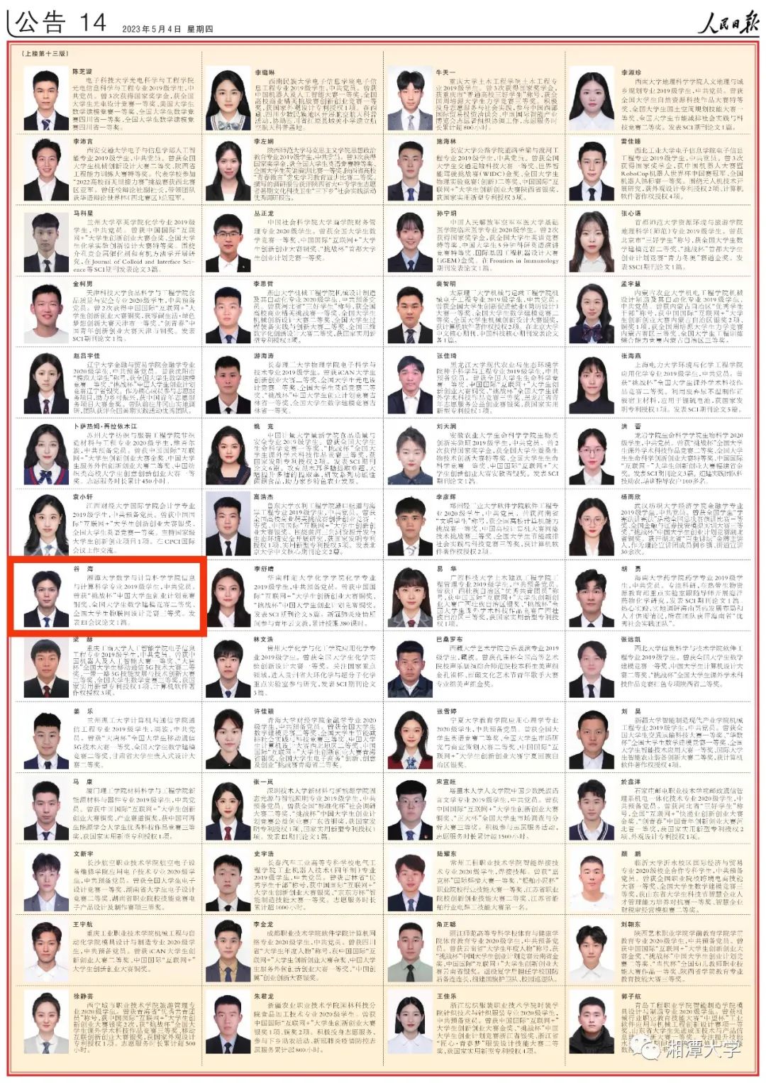 谷海,太阳成集团tyc33455cc数学与计算科学公司2019级信息与计算科学专业本科生,中共党员,综合成绩排名四年专业第一。三年获校甲等奖学金,获三好员工、三好员工标兵、十佳老员工称号,被推荐为湖南省创新创业优秀毕业生,参与的计算数学青年团队获湖南省“青年五四”奖章集体。2023年入选《人民日报》刊发的《本专科生国家奖学金获奖员工代表名录》。曾获国家奖学金、宝钢优秀员工奖、全国老员工数学建模竞赛二等奖、“挑战杯”中国老员工创业计划竞赛铜奖等国家级奖励6项,省级奖励6项。主持国家级老员工创新创业训练项目,结项并获评优秀,入选全国老员工创新创业年会改革成果项目。已推免至北京师范大学心理学部认知神经科学与学习国家重点实验室计算机应用技术专业。