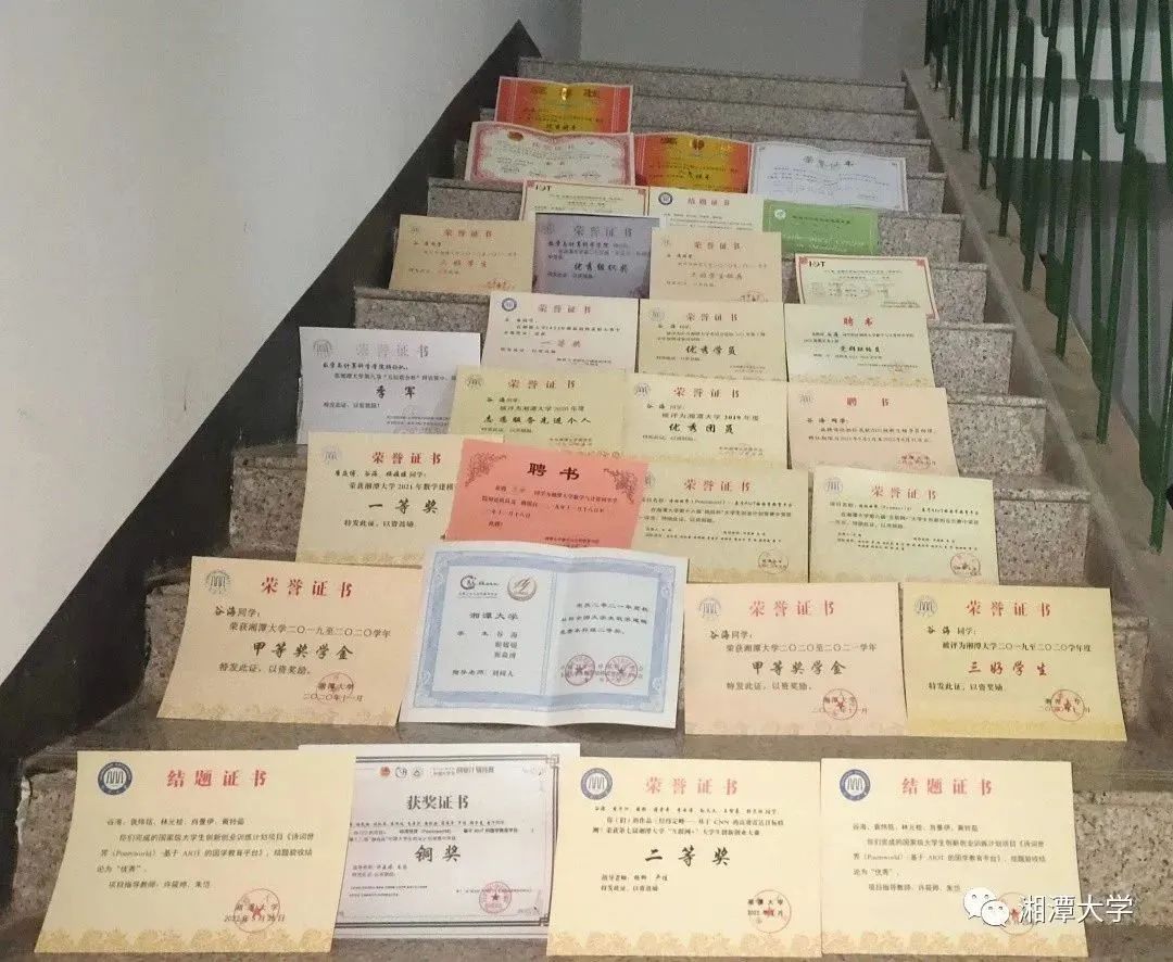 星光不负赶路人,努力奋斗,终有回报。4年间,谷海综合测评连续四年专业第一,34门课程满绩,获得国家奖学金、宝钢优秀员工奖、“芙蓉学子·榜样力量”道德风尚奖等,竞赛中获得了全国老员工数模竞赛二等奖、挑战杯铜奖、物联网设计三等奖等国家级奖励6项,省部级奖励6项,参与的计算数学青年团队获湖南省“青年五四”奖章集体。